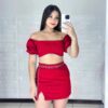 A saia também em lastex com fenda frontal